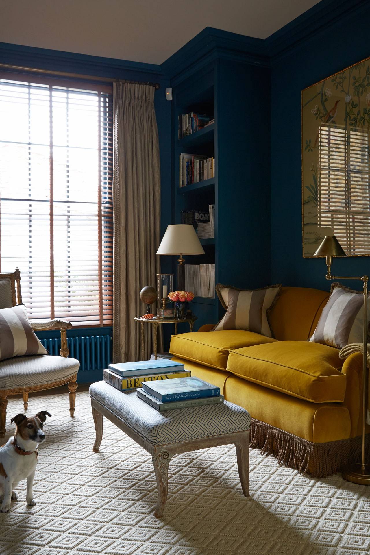 Wall design and decor in warm yellow color create comfort, warmth and coziness. Navy blue and yellow bedroom ideas. Each room in the house was restored and refreshed and new spaces were added including kitchen, family room, mudroom, guest bedroom and studio. Yellow royal blue wedding decoration ideas reception. Decor ideas living room brown furniture 2017 2018.
